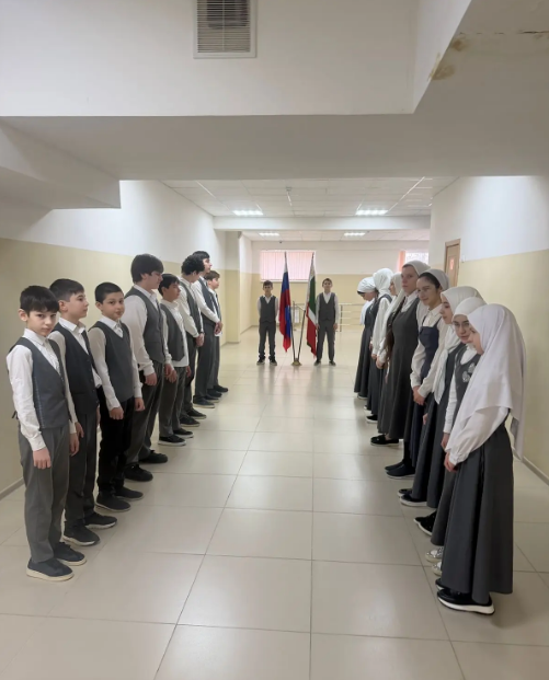 9 февраля, в нашей школе прошла торжественная линейка, которая началась с выноса Государственного флага и исполнения гимнов Российской Федерации и Чеченской Республики.