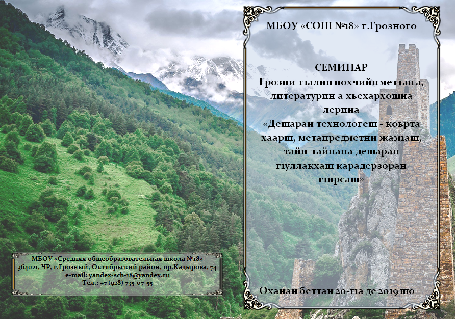 Оханан беттан 20-чу дийнахь Грозный-г1алин №18 йолчу школехь д1аяьхьира "Нохчийн меттан Денна" лерина г1аларчу нохчийн меттан а, литературин а хьехархошна семинар "Дешаран технологеш- коьрта хаарш, метапредметни жам1аш, тайп-тайпана дешаран г1уллакхаш карадерзоран г1ирсаш санна" ц1е йолуш. Семинаре кхайкхина хьеший: дешаран -1илманан министр Байханов Баутдин Исмаил, Ирисханов Ахьмадан 1имран, Яздархойн Союзан коьрта редактор, Даудов Гилани - поэт, Ибрагимова Мадина Добиевна.