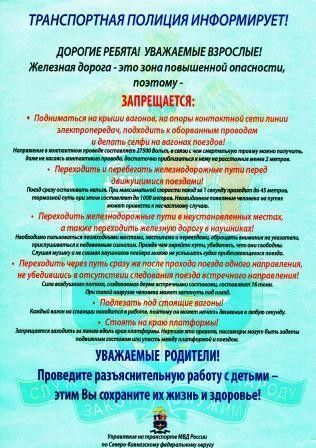 Памятка УТ МВД России по СКФО о правилах поведения на железнодорожном транспорте.